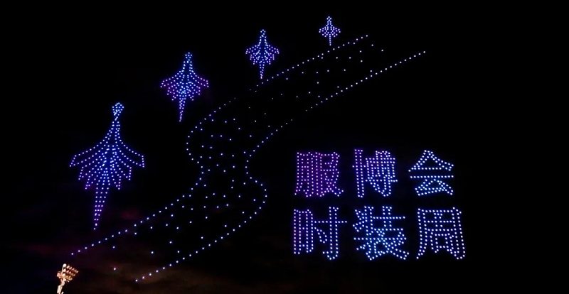 当夜幕深沉,一场壮观的无人机表演秀将开幕式推向了最高潮。数百架无人机腾空而起,在夜空中编排出各种图案与文字,与璀璨的灯光、悠扬的音乐共同构成了一幅幅动人的画面,为这场时尚盛宴画上了圆满的句号。