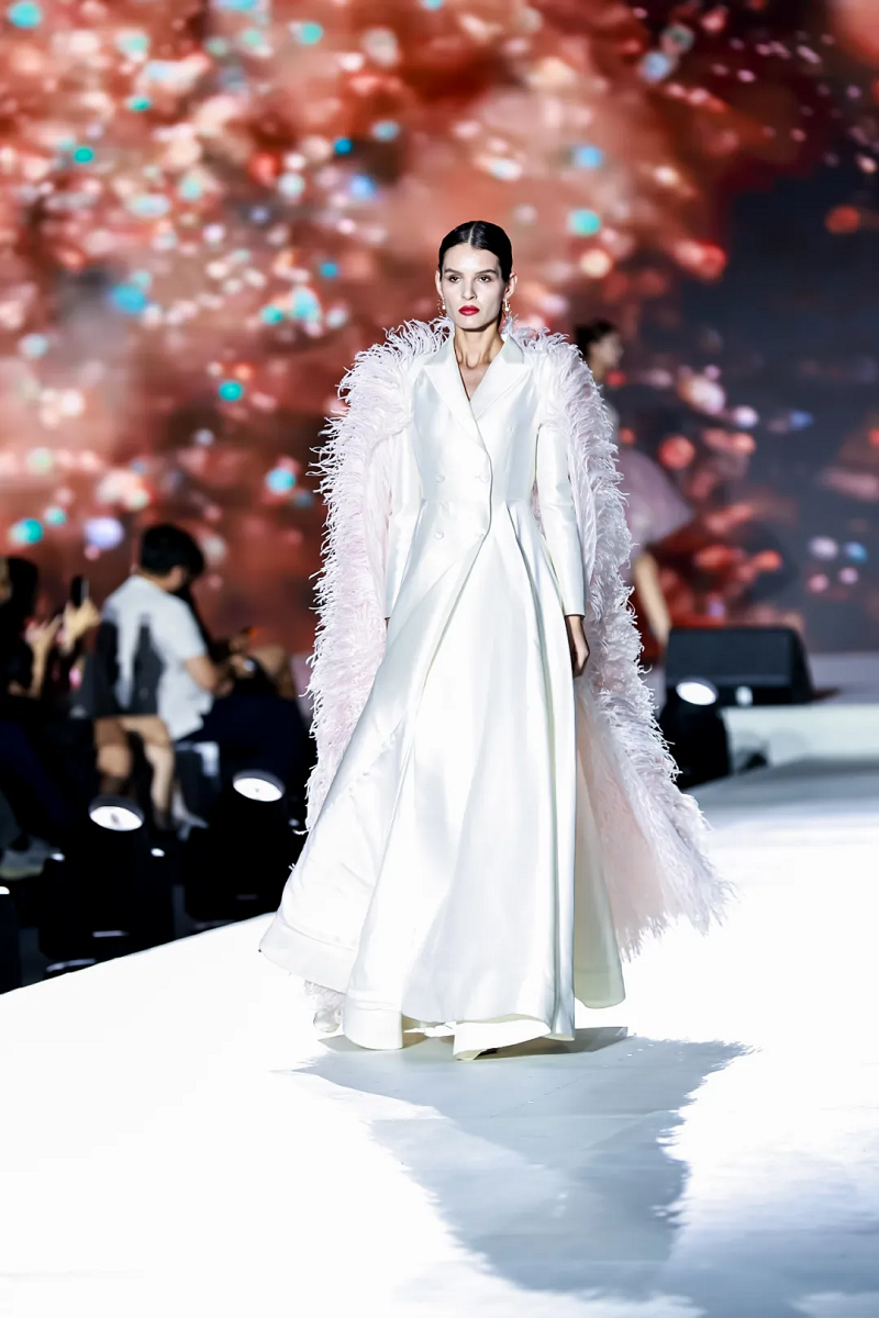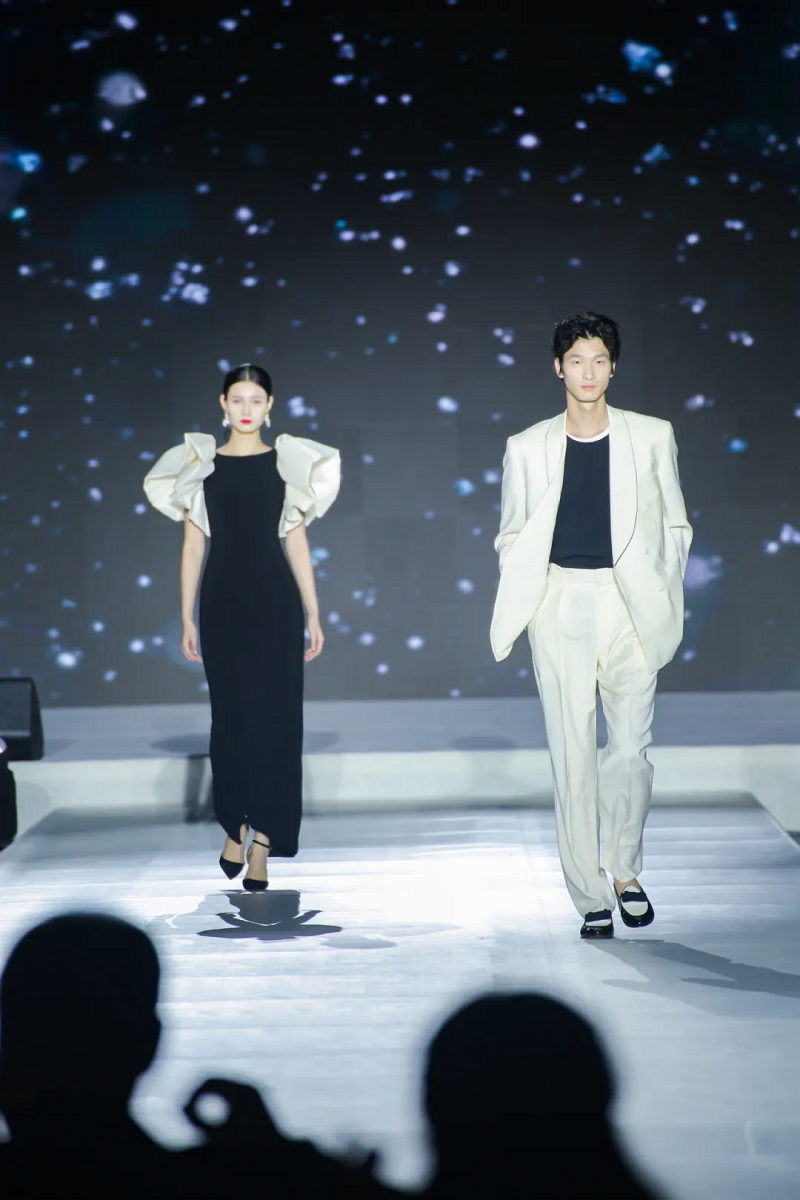 随后,大杨集团创世高级男装与张鹏高级定制女装品牌带来的精彩展演秀,将现场氛围推向了高潮。模特们身着华美的服饰,在T台上尽情展示着中国服装品牌的独特魅力与卓越品质,赢得了现场观众的阵阵掌声。
